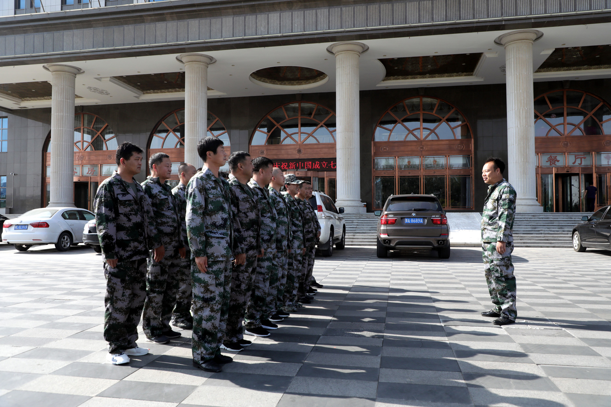 在军事队列训练过程中队员们虽然表现出了久未训练的生疏,但通过几轮训练后逐步进入状态,站起了挺拔的军姿、踢起了铿锵的正步,展现出退伍军人应有的风采。