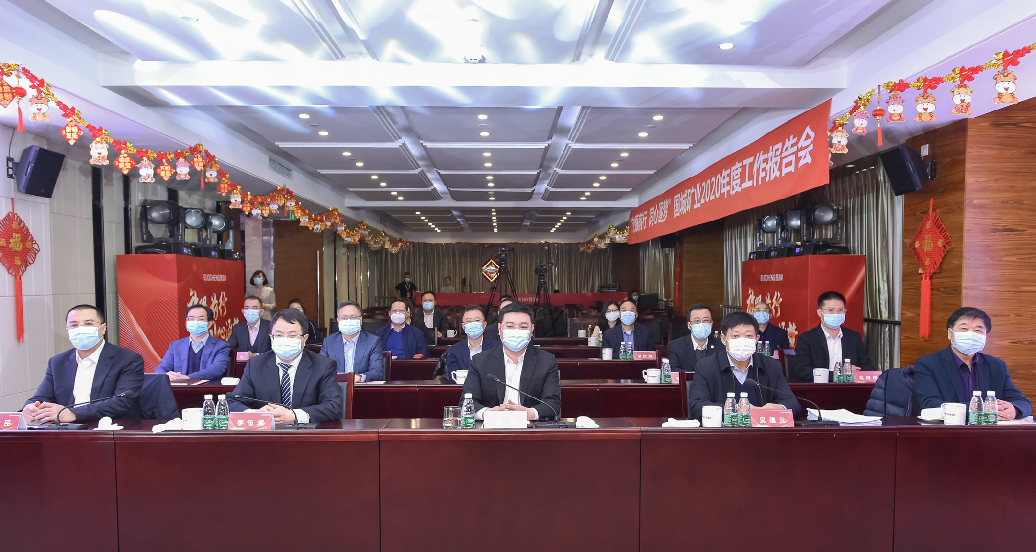 律回春晖渐,万象始更新。2021年2月2日,国城矿业2020年度工作报告会暨2021新春线上团拜会胜利召开。为积极响应国家新冠疫情防疫防控工作要求,减少人员聚集,本次会议采取线上线下相结合的形式,公司总部主会场与全国各地子公司及托管企业十多个分会场共享盛典。大会为期一天,严格遵守疫情防控有关规定,紧张有序地进行。本次活动的主题为“放眼前行,同心逐梦”。